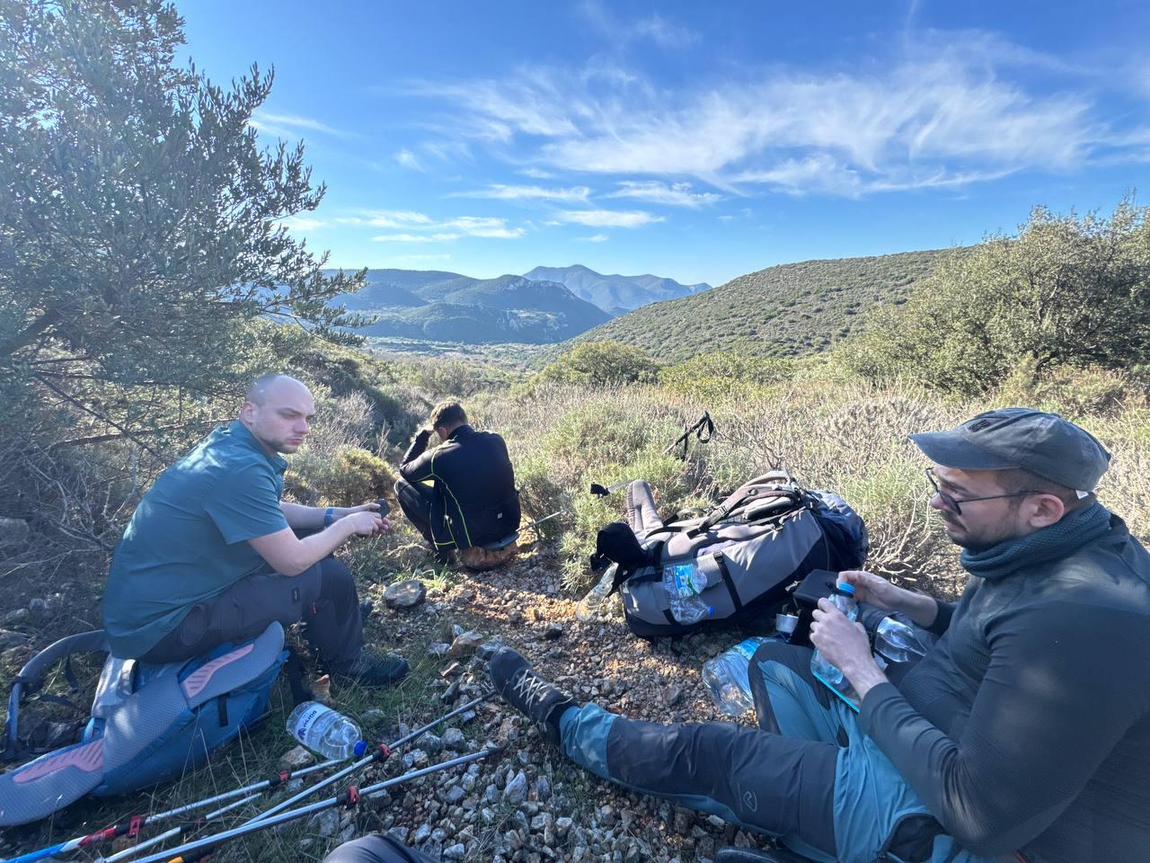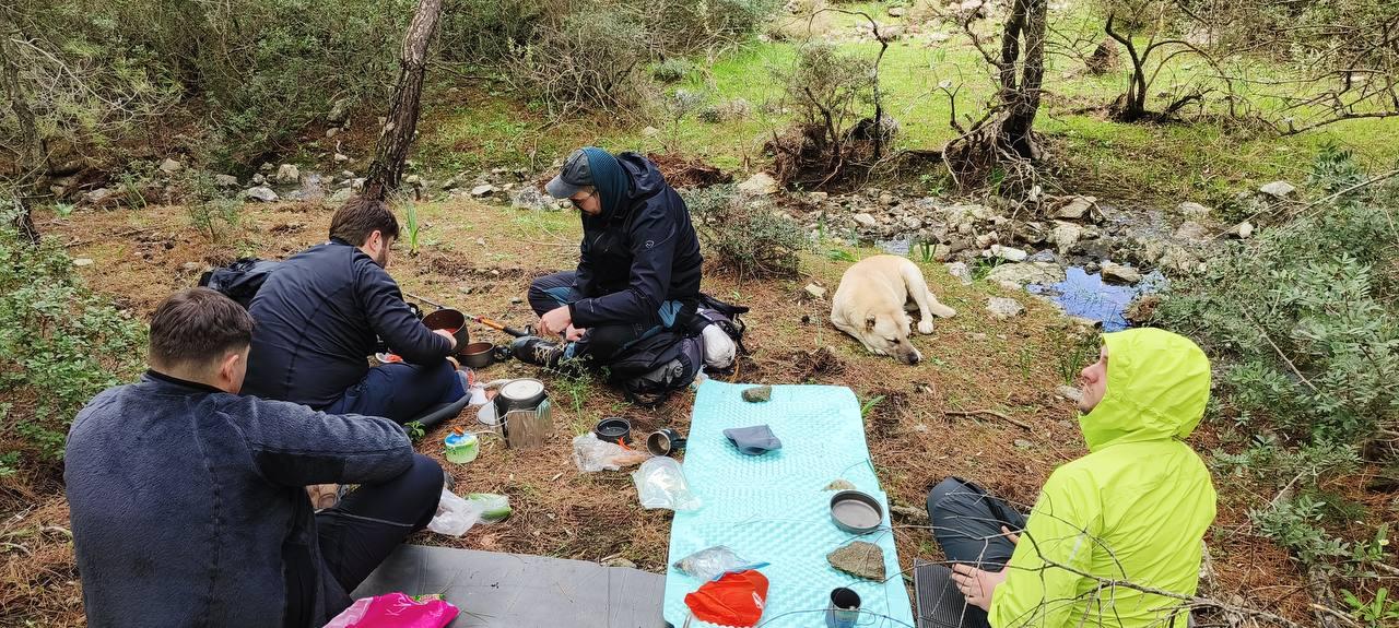 Ничего особо примечательного не произошло, источник воды нашли за километр до места ночевки, сделали прямо там обед, набрали побольше воды и потопали на стоянку.