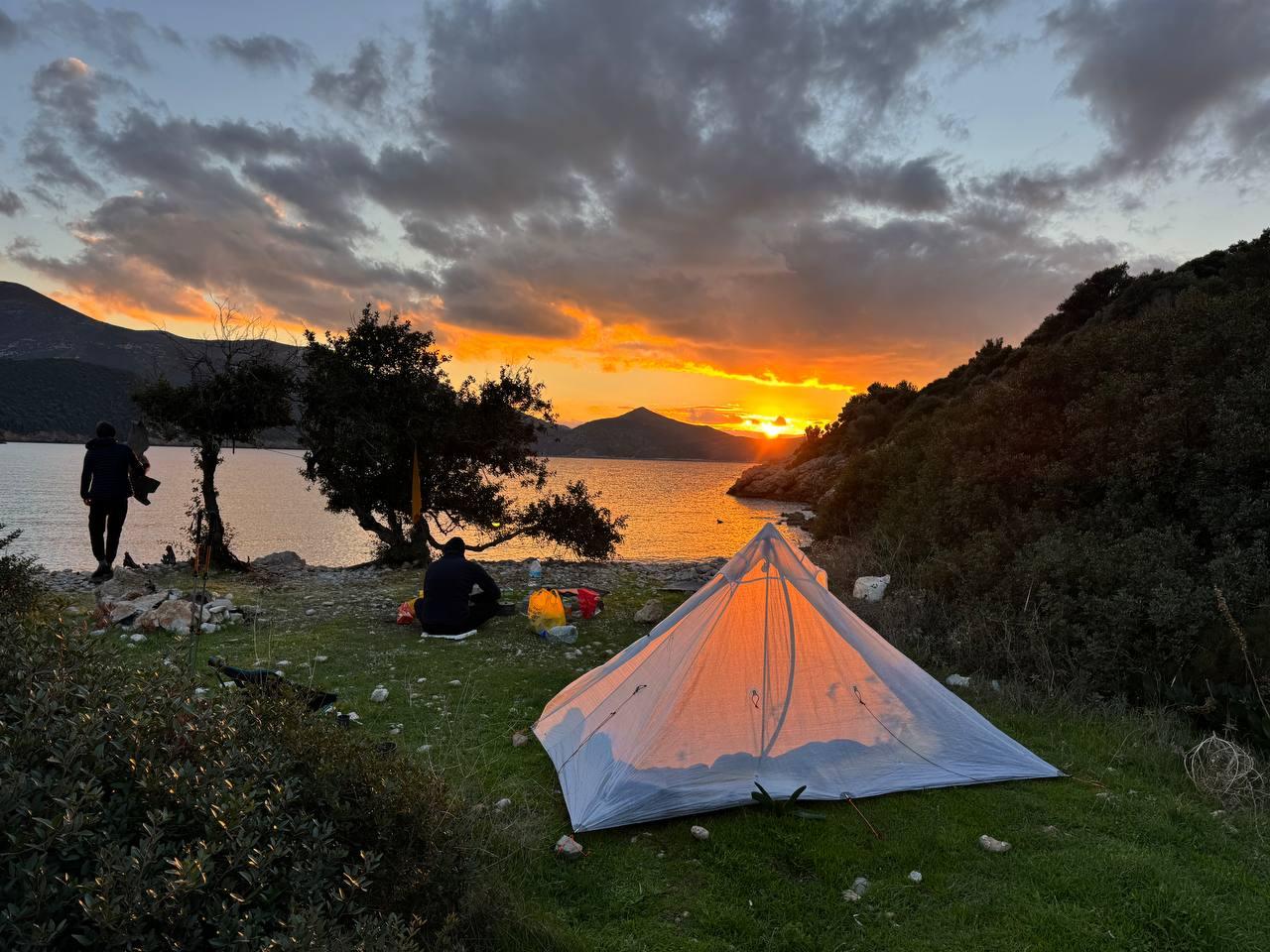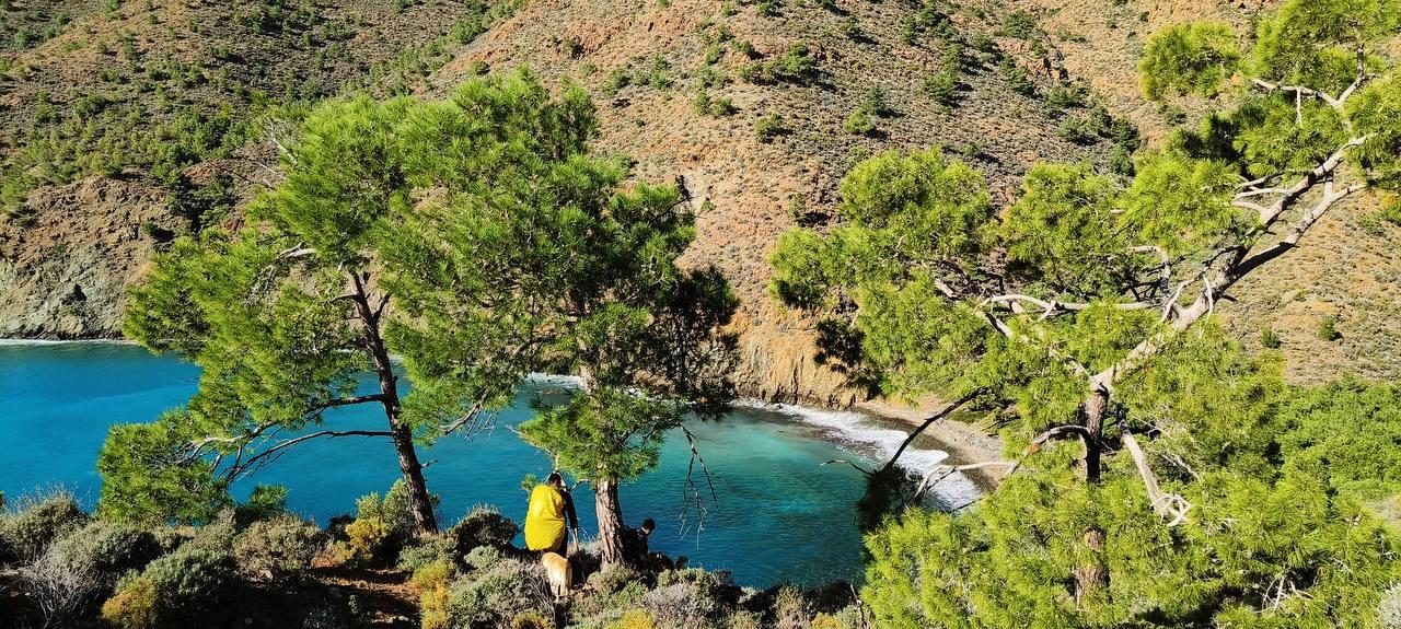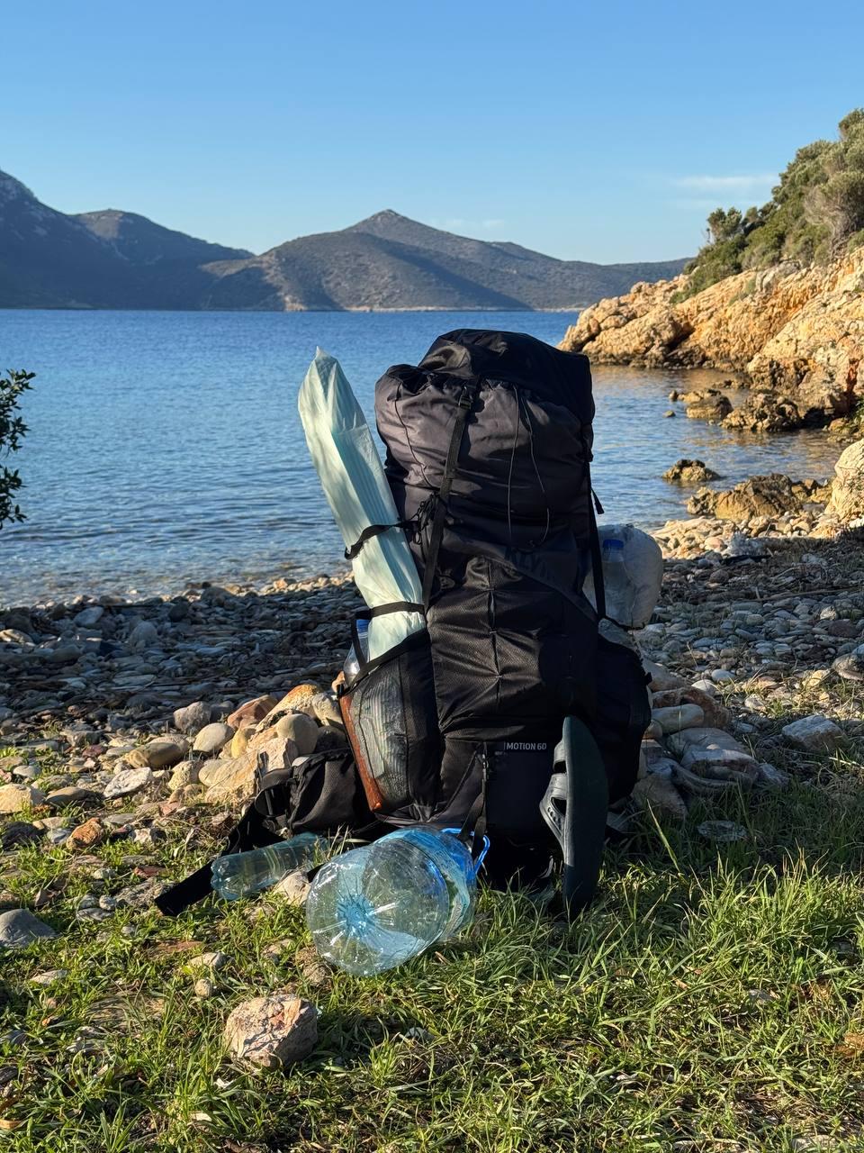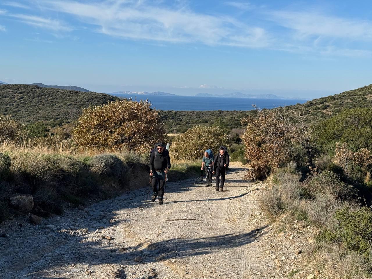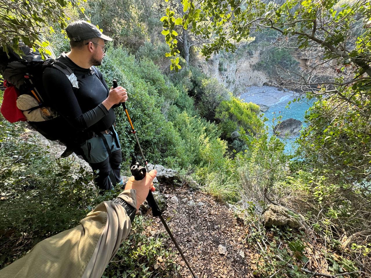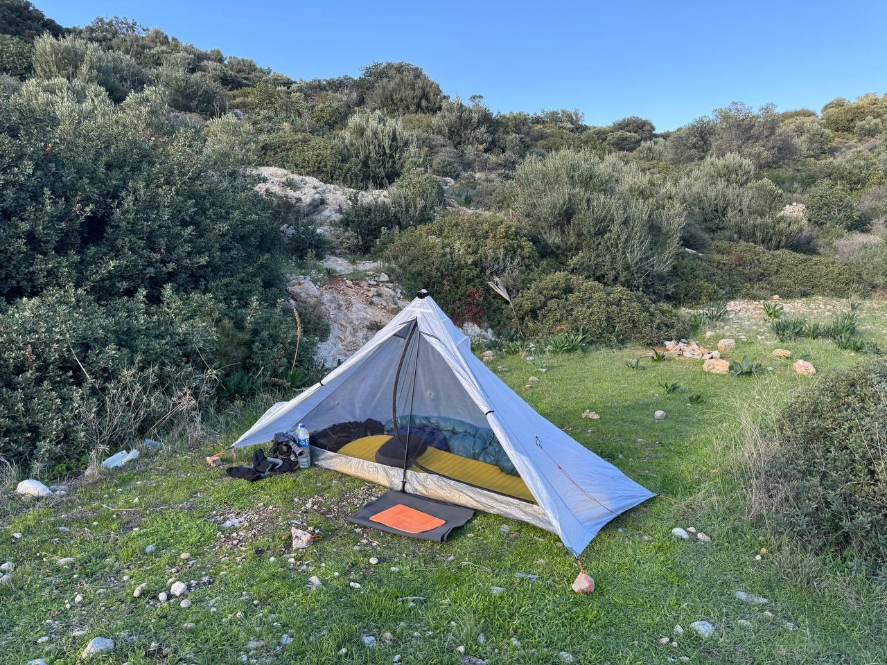 План был заночевать на пляже прямо за Книдосом, но не нашли спуска и пошли еще полтора км до плато где и заночевали, прошли около 19 км.
