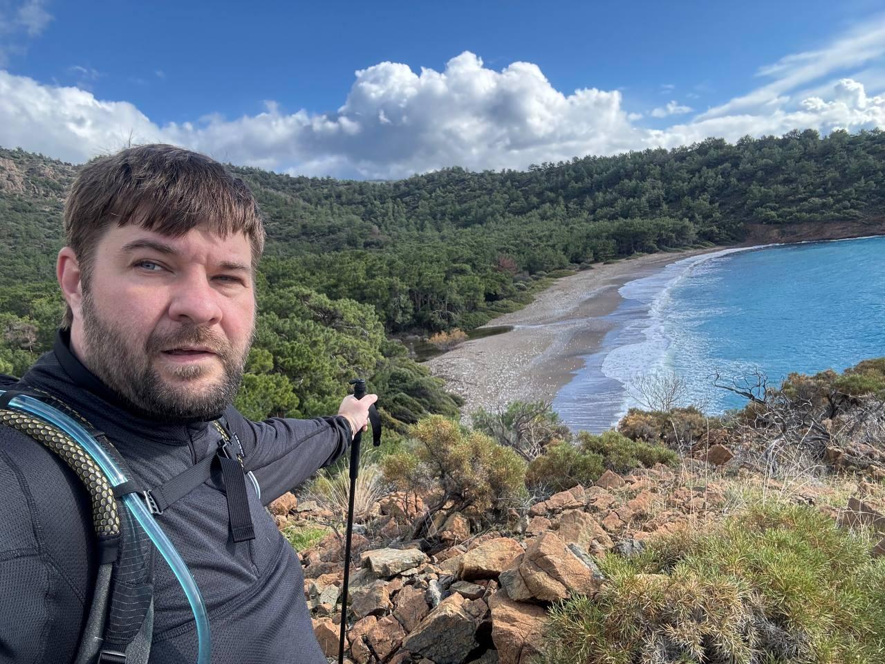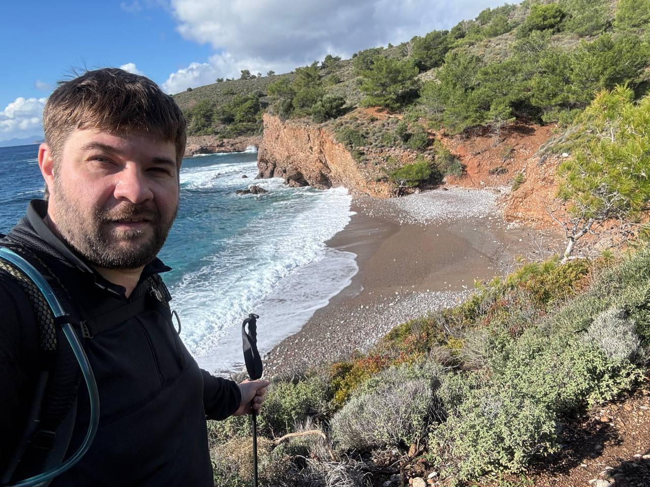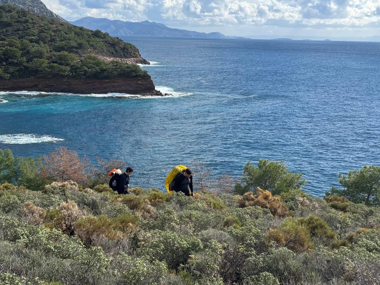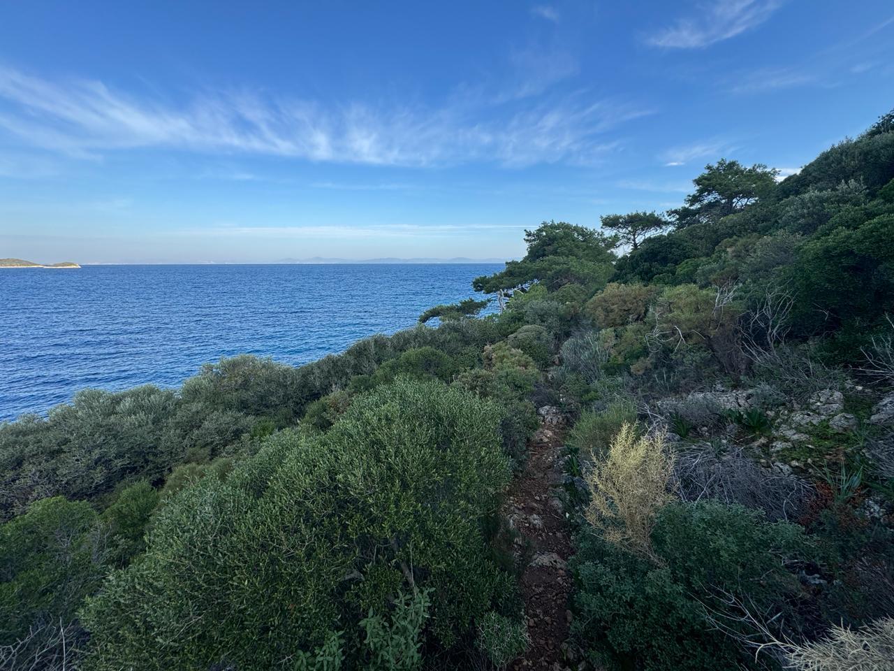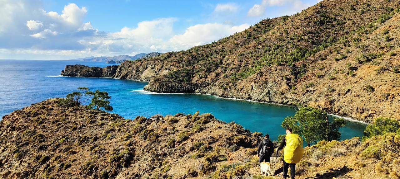План был заночевать на пляже прямо за Книдосом, но не нашли спуска и пошли еще полтора км до плато где и заночевали, прошли около 19 км.