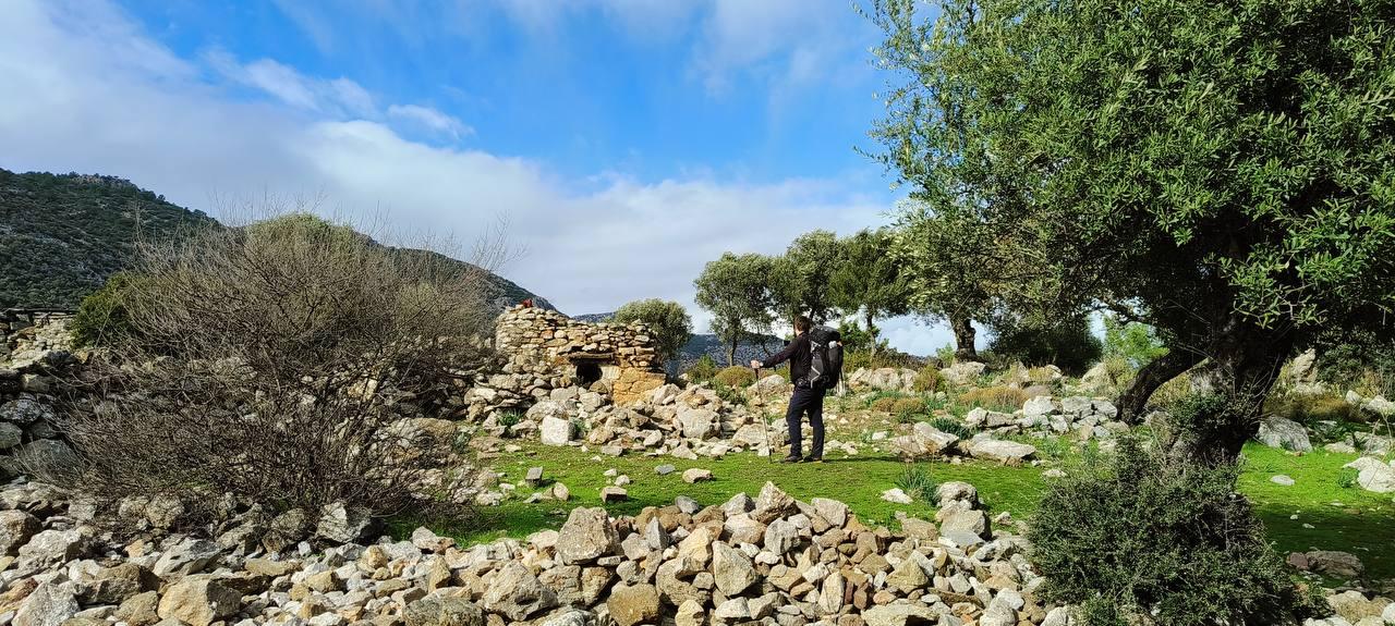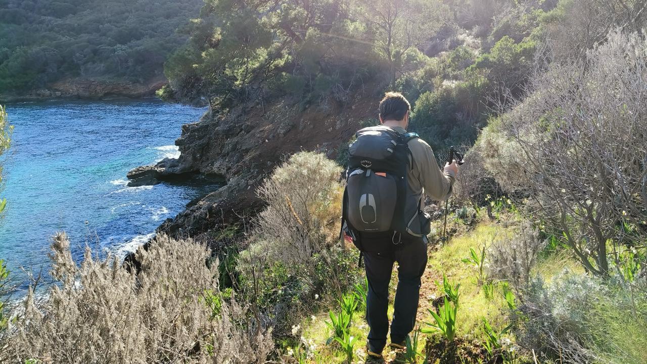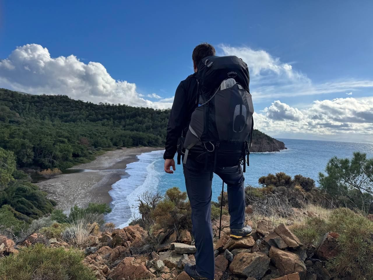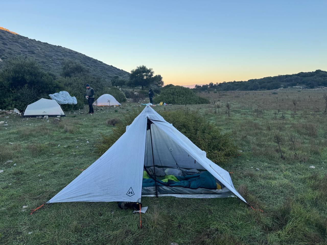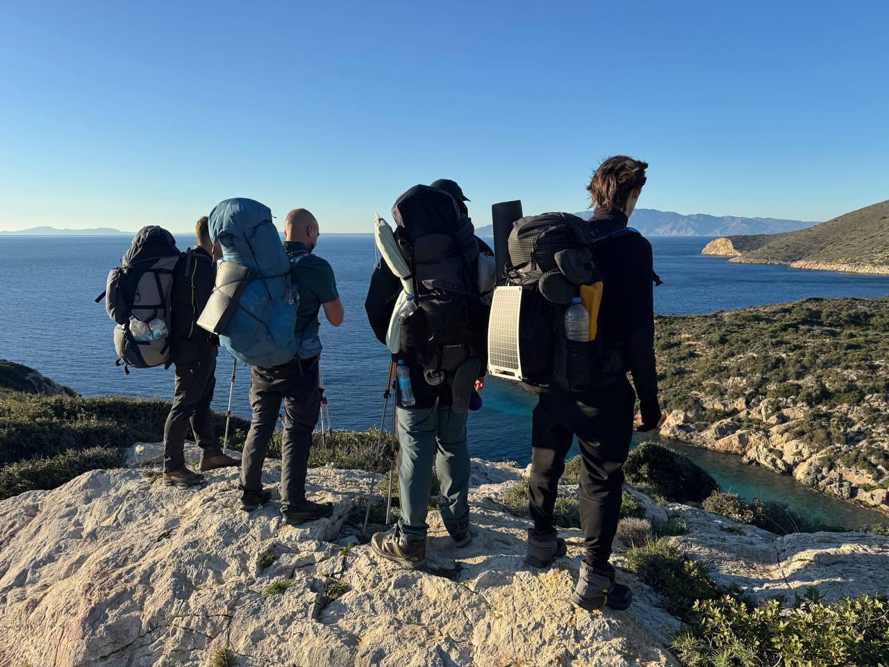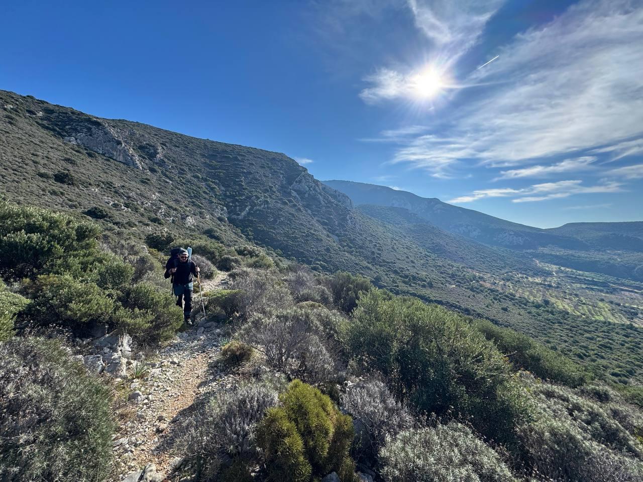 План был заночевать на пляже прямо за Книдосом, но не нашли спуска и пошли еще полтора км до плато где и заночевали, прошли около 19 км.