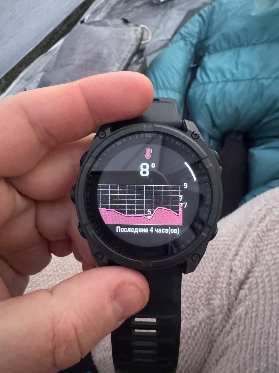 Ночью было 5 градусов в палатке, мне не было холодно, но руки высовывать из спальника не хотелось.