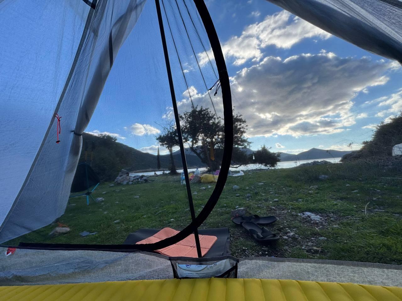 На полудневке мне удалось протестировать функцию моей новой палатки, которую я называю панорамным окном, мне очень это нравится.