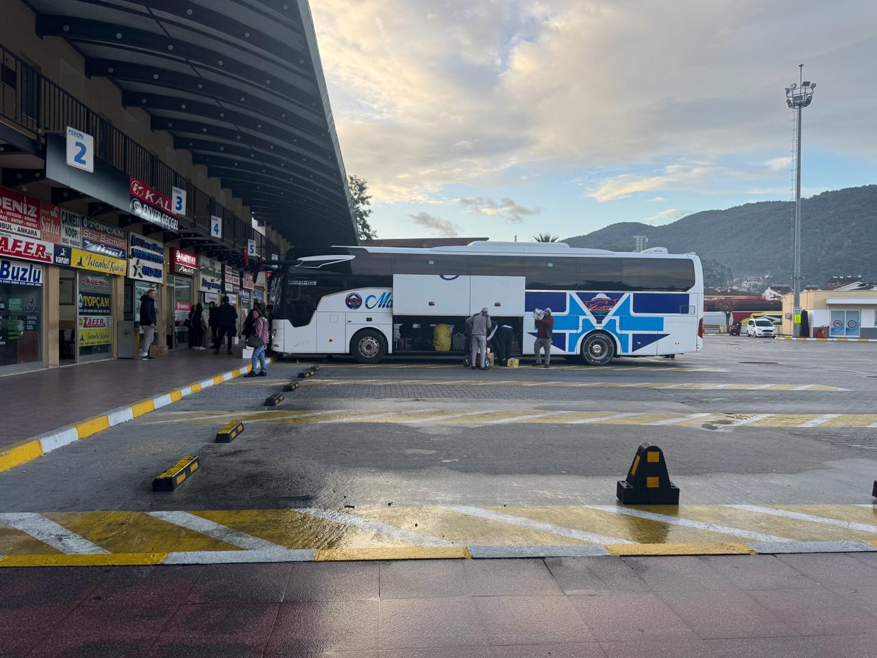 Про автобусы в Турции я уже писал несколько раз, они там достаточно комфортные, билет из Антальи в Мармарис стоил около 550 лир (это примерно 1100 рублей и 5 часов в дороге).